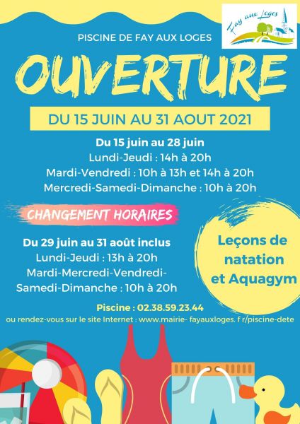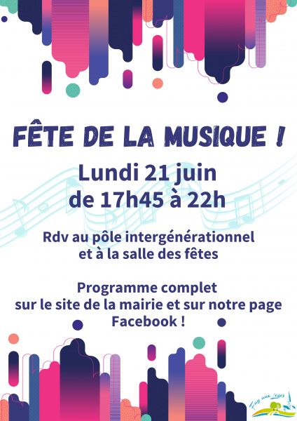? Fête de la musique ! ?   Ca y est, les notes, les chants et les mélodies vont pouvoir retentir dans Fay aux Loges en votre compagnie.    ? Le lundi 21 juin 2021 de 17h45 à 22h, venez profiter d’un moment musical entre la salle des fêtes et le pôle intergénérationnel. ?   Au programme :  ? À la Salle des Fêtes :  17h45 à 18h30 - Chant, body percussion et samba par la Maison des Loges et la Maison des Jeunes 18h45 à 19h15 - Séance de zumba par les maîtresses Céline et Agnès 19h30 à 20h30 - Répétition en public de l’Harmonie de Fay - AtoutVoix. Découvrez les "coulisses" d'un concert et le travail des musiciens. 20h45 à 22h - Reprise des morceaux Pop Rock par BBQ Joan and the matches   ? Dans la cour du Pôle Intergénérationnel :  18h à 18h30 - Prestation des élèves de flûte traversière avec Anne-Lise De France 18h30 à 20h - Prestation des élèves de piano avec David Jaloux 20h à 21h - Découvrez différents chanteurs avec les élèves de Shirley Zentille 21h à 22h - Animation années 80' et 90' par Lise et Alain   ? On reste prudent malgré tout avec le port du masque obligatoire et la mise à disposition de gel hydroalcoolique à l'entrée. Merci de respecter le sens de circulation mis en place. Nous devons respecter encore plusieurs restrictions. Il n'y aura donc pas de restauration ni buvette aux abords.   Nous mettons tout en œuvre pour que vous passiez une agréable soirée, merci de votre compréhension !   Avec hâte de vous retrouver ! ?