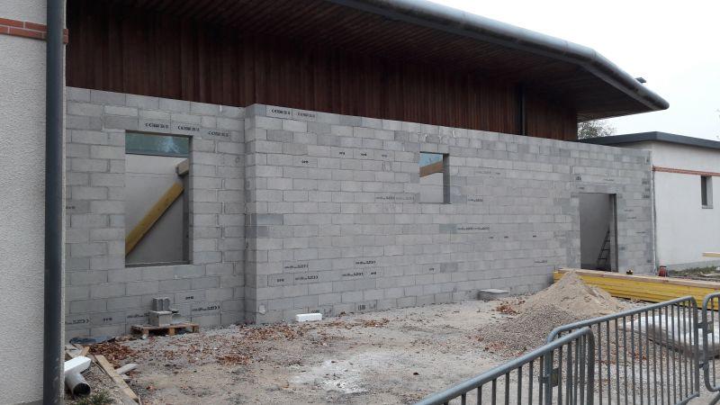 Les travaux vont permettre de doubler la surface de stockage en matériel de la salle des Fêtes afin d’avoir une gestion et une centralisation plus cohérente. La surface supplémentaire sera augmentée de 29 m² auxquelles un bureau administratif de 10 m² sera ajouté pour le régisseur de la salle.