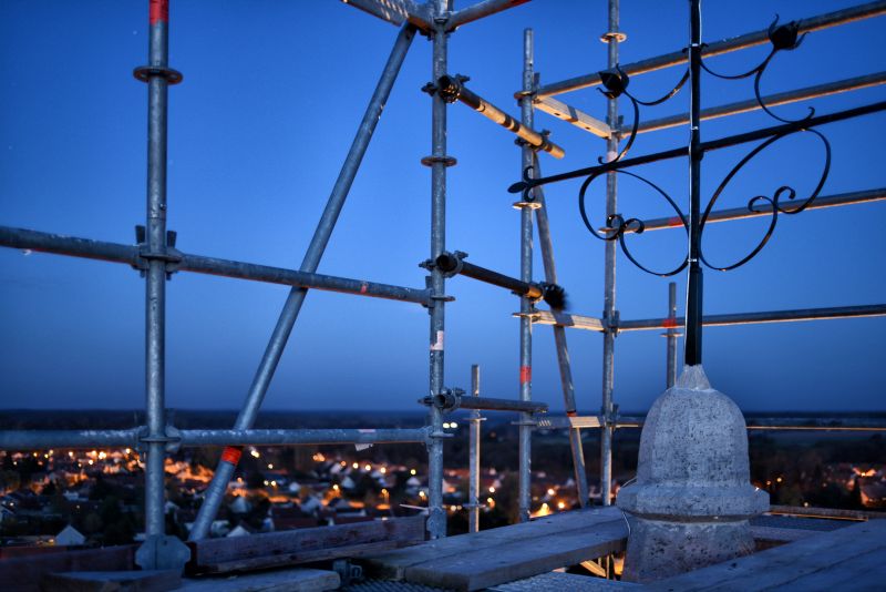 Les finitions des travaux du clocher se terminant, le démontage de l'échafaudage (jusqu'au niveau des abat-sons), commencera le 9 décembre.